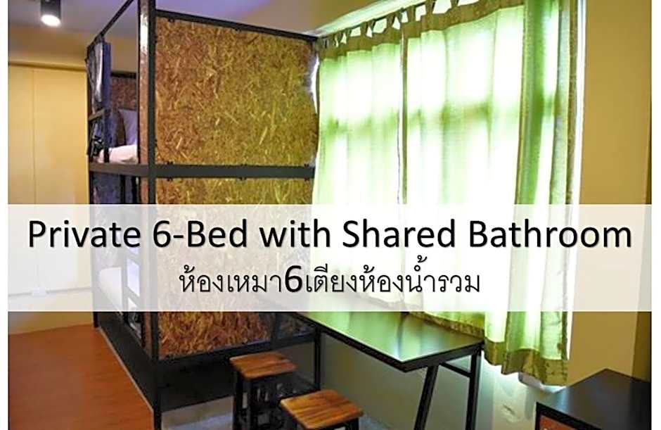 The family room provides air conditioning, a tiled floor, as well as a shared bathroom featuring a shower and a hairdryer. The family room features a quiet street view. The unit offers 6 beds.
